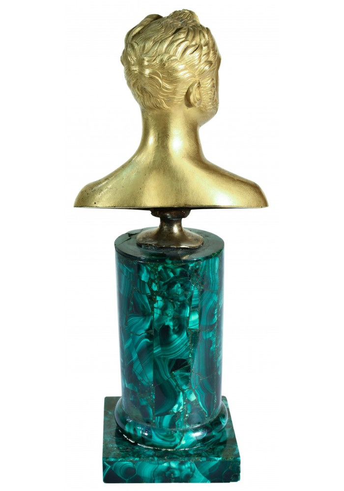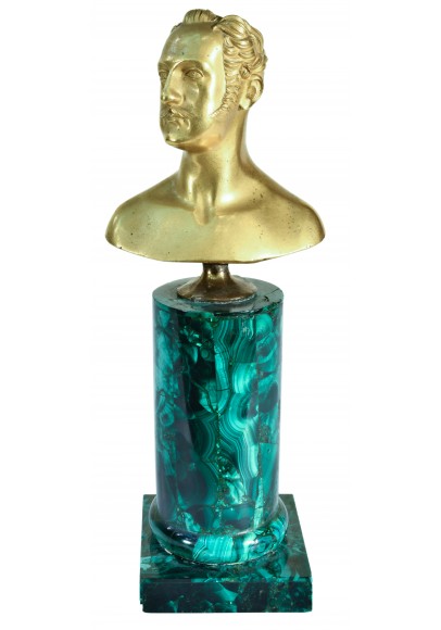 Бронза, литье, чеканка, золочение, малахит, Россия, середина XIX века, высота 19,5 см